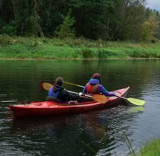 A relaxing and refreshing place to take a swim in the summer heat. Enjoy the songs of the birds as you experience the ultimate summer activity - reading a book in a hammock, jumping in the river for a swim, and tanning in the sun. If kayaking is your thing then you are in luck. If you cross the bridge to the other bank you will find our neighbors who will gladly rent you some kayaks or offer you some other fun activities.